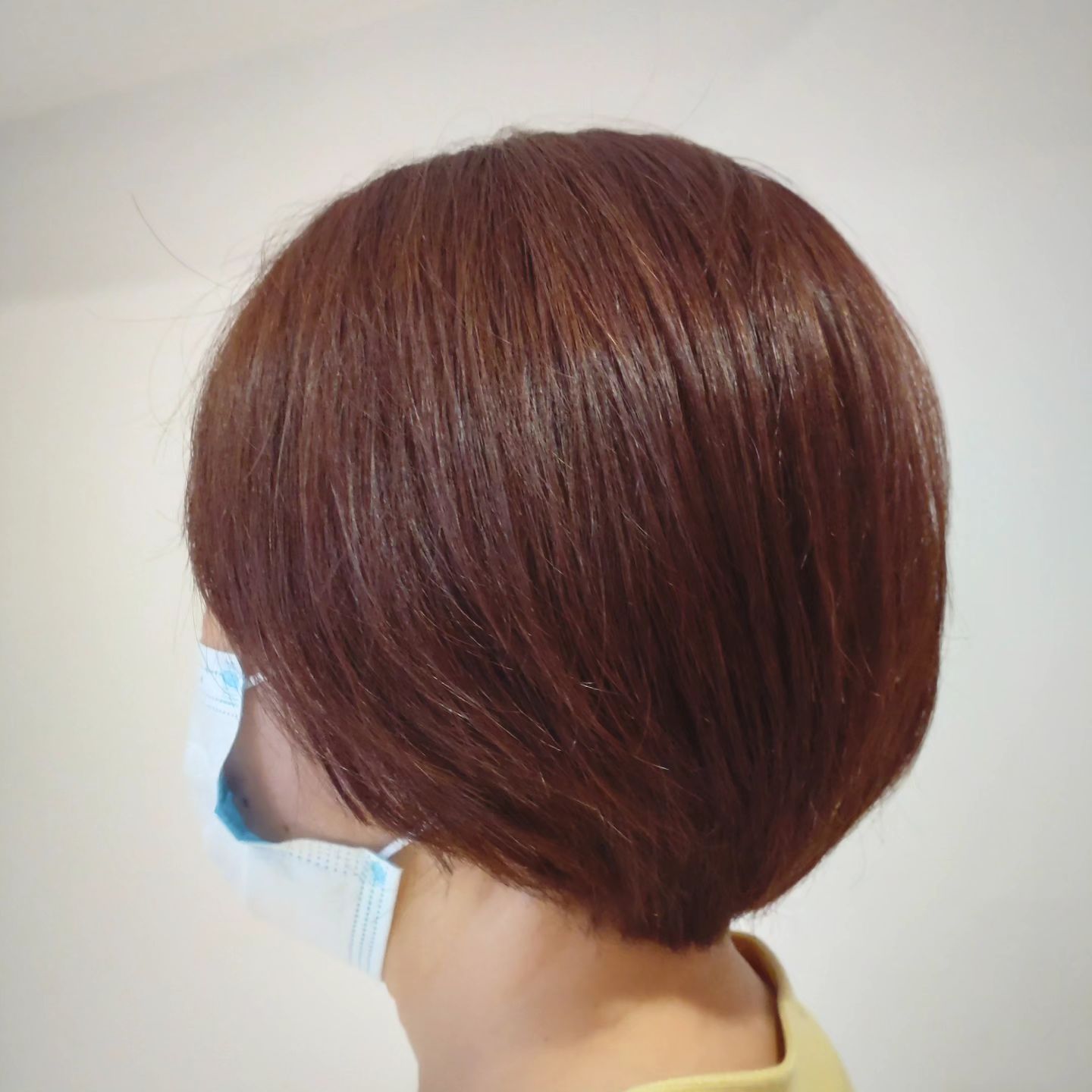 ショートから伸ばし中の丸みのあるスタイルです