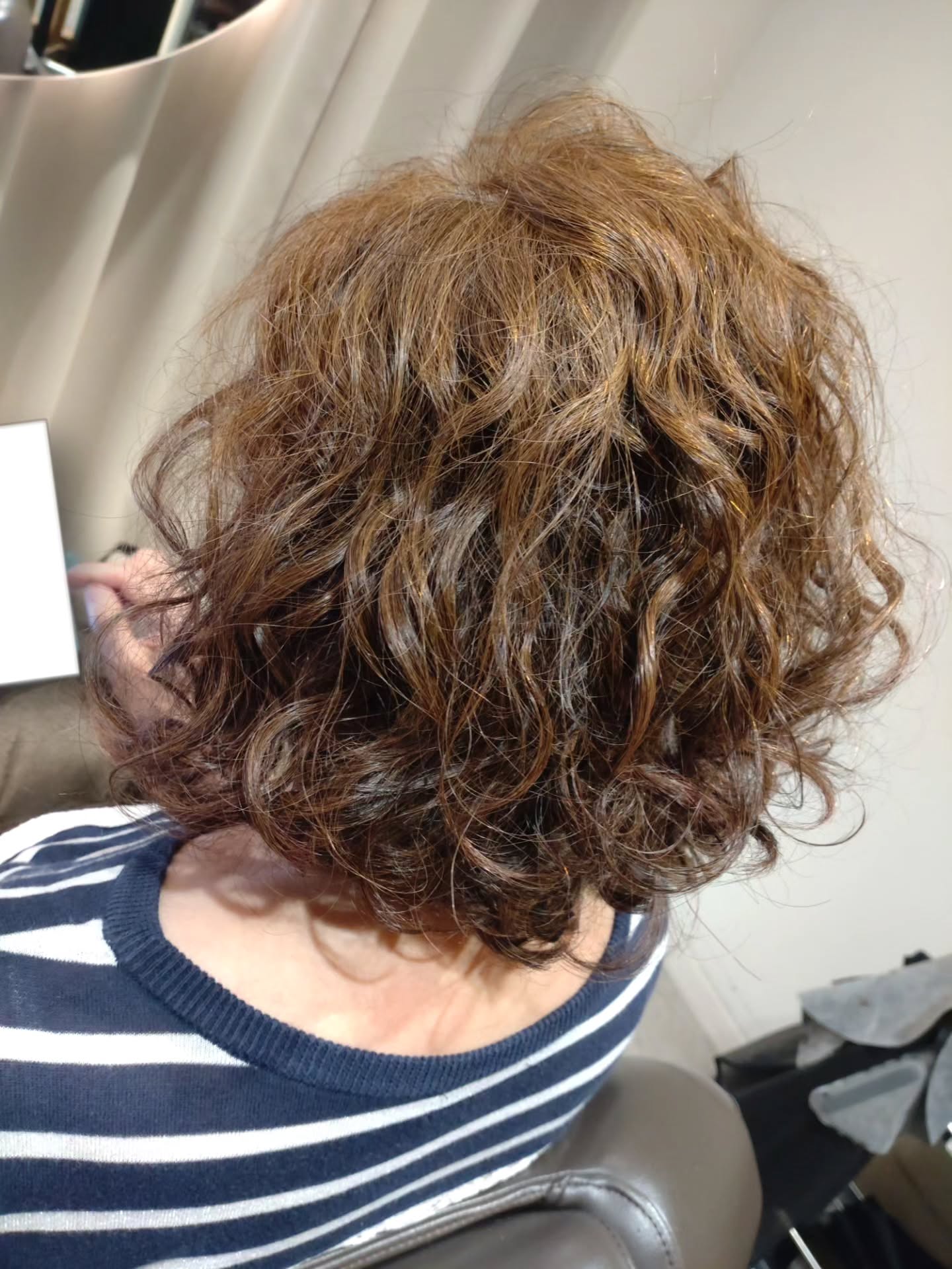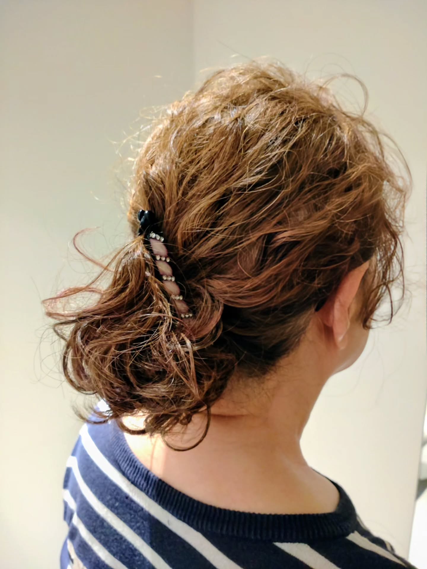 ストレートヘアをふわふわにパーマをかけたスタイルです