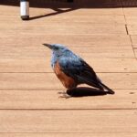 テラスに降りたイソヒヨドリに興奮! 美しい声のさえずりは良く聞こえるのに、姿が見えず残念でした。 近・・・・・・