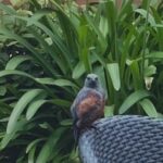 イソヒヨドリのピー子がテラス席に来店(•ө•)♡ 椅子の背でくつろいで居る姿に、お客様と見入ってしま・・・・・・