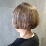 襟足ギリギリのボブスタイル。 耳に掛けたときに、丸いシルエットになる様 バックに少しグラデーションを・・・・・・